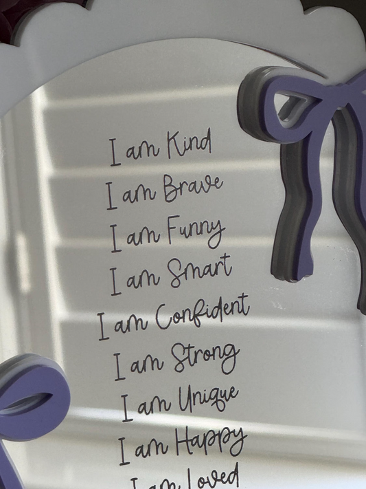 Personalised Affirmation Arched Mirror with Bow Design for Child’s Bedroom