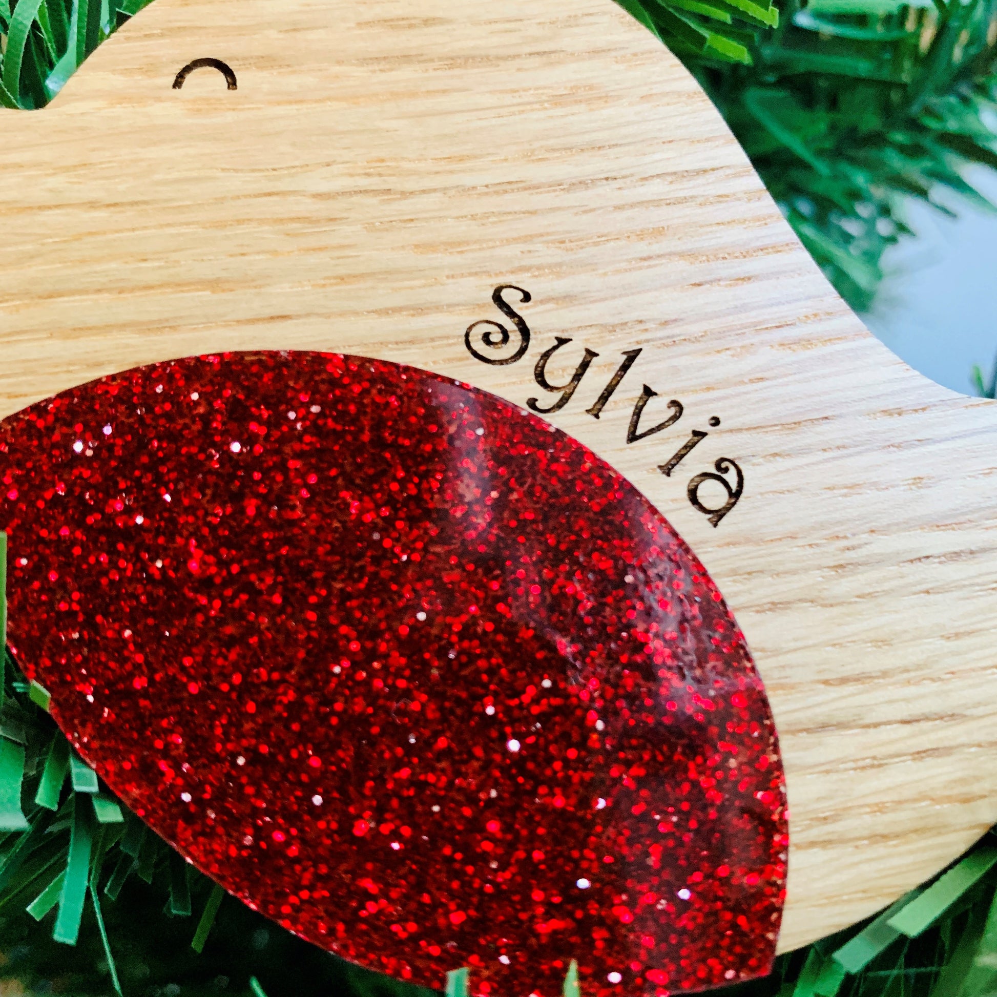 - Our beautiful robin red breast is made from solid oak and red glitter acrylic