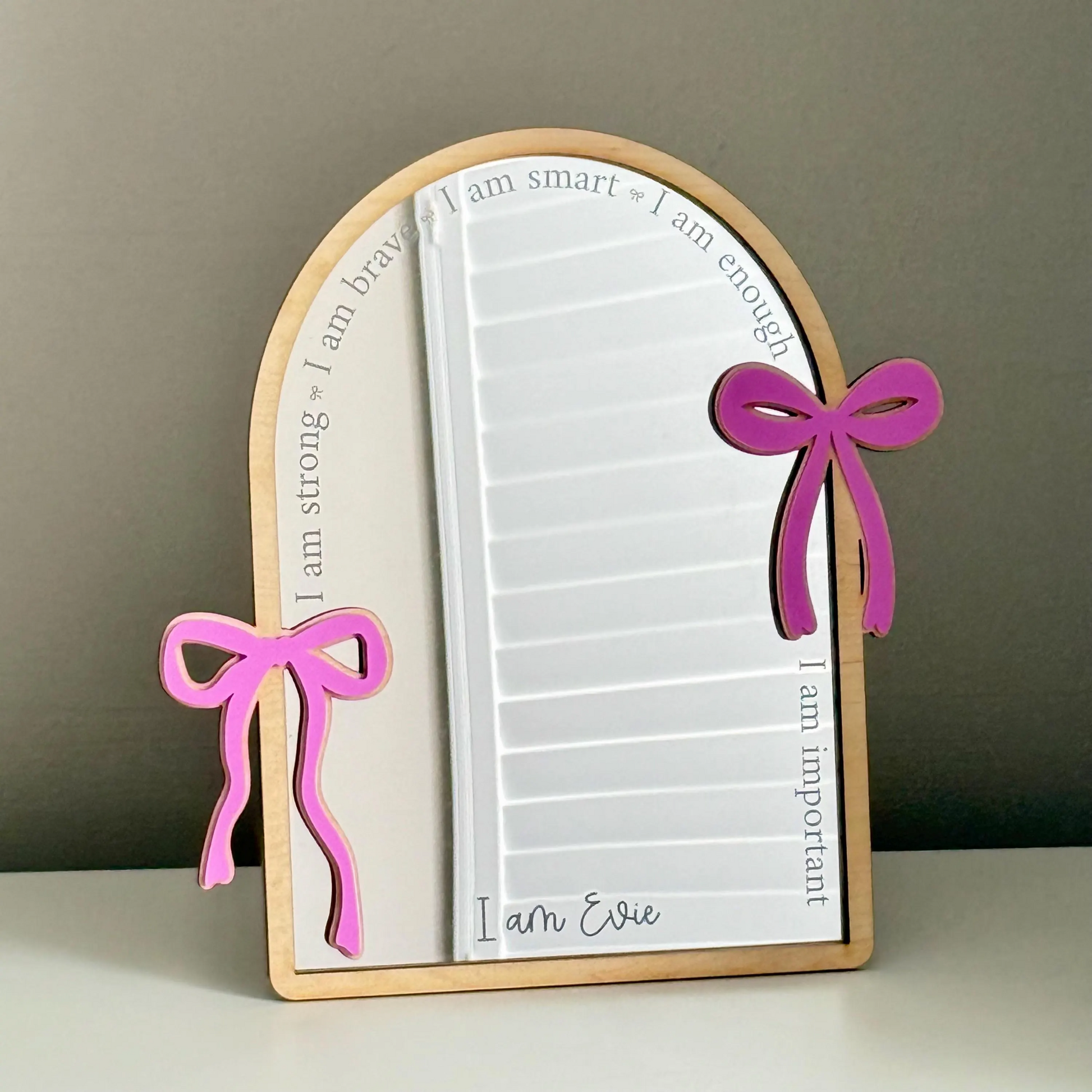 Personalised Affirmation Arched Mirror with Bow Design for Child’s Bedroom