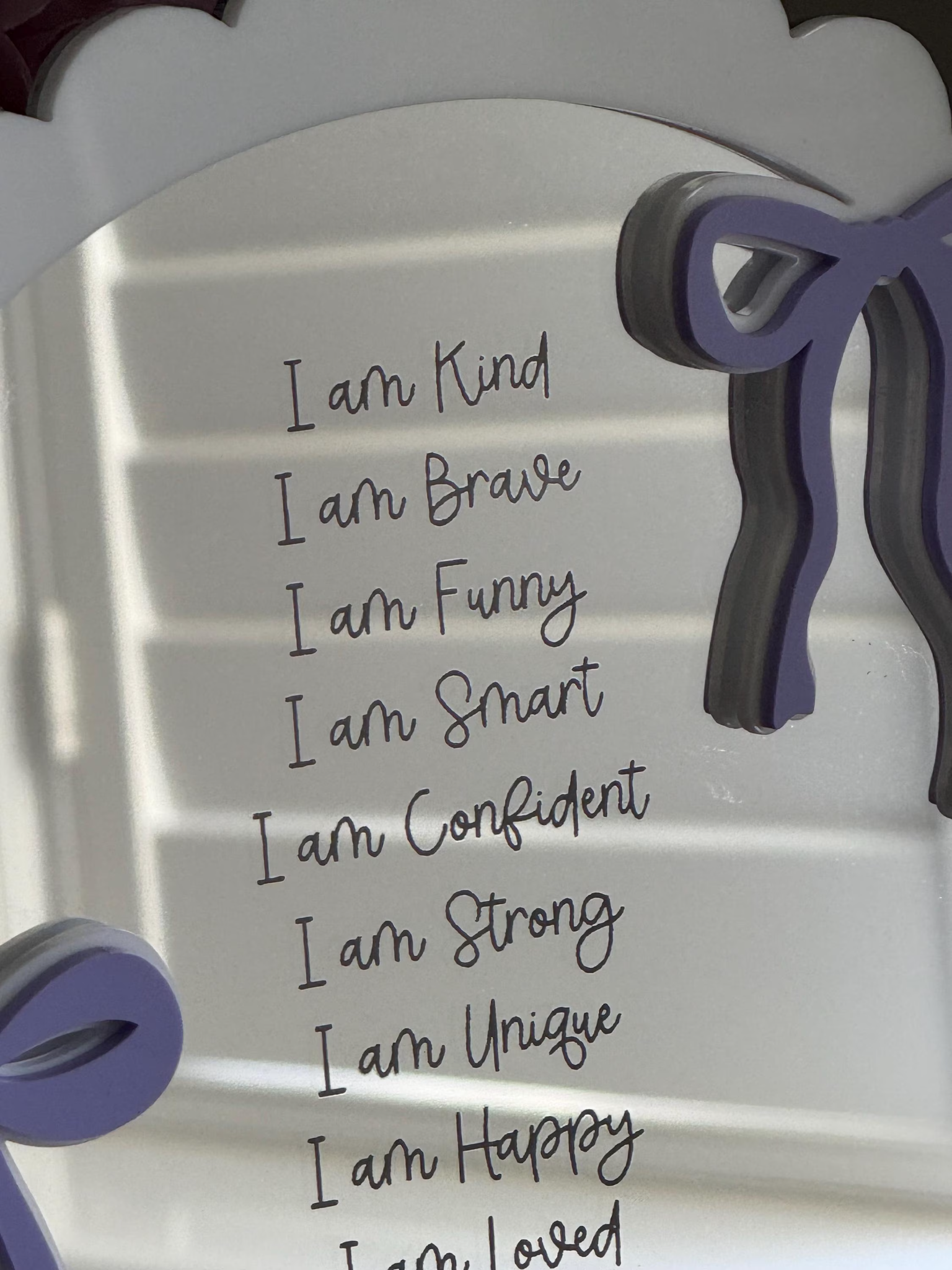 Boost confidence and self-love with this personalised engraved affirmation mirror – perfect for children’s bedrooms, nurseries, playrooms, or dressing tables.