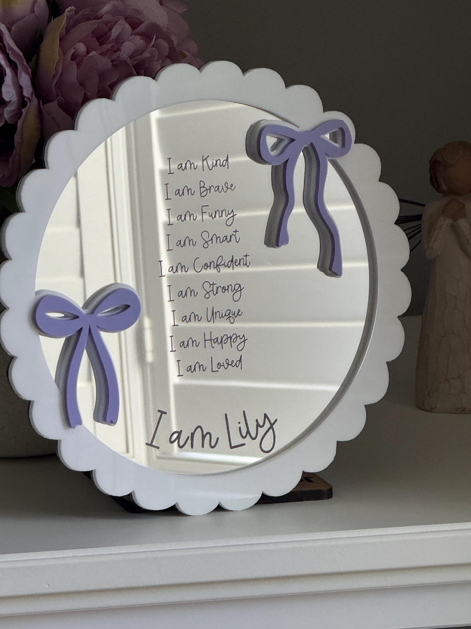 Personalised Affirmation Mirror with Bow Design for Child’s Bedroom Scalloped