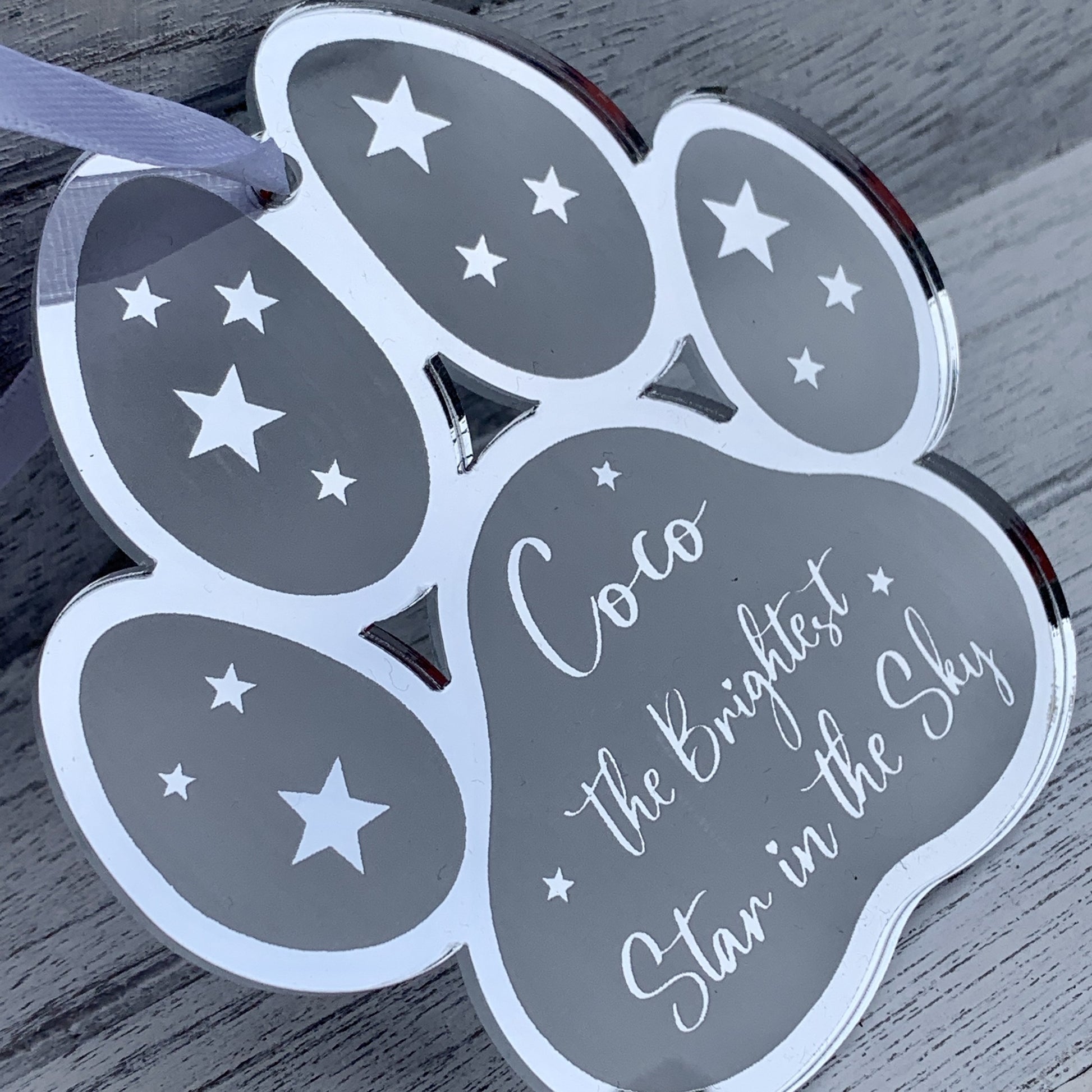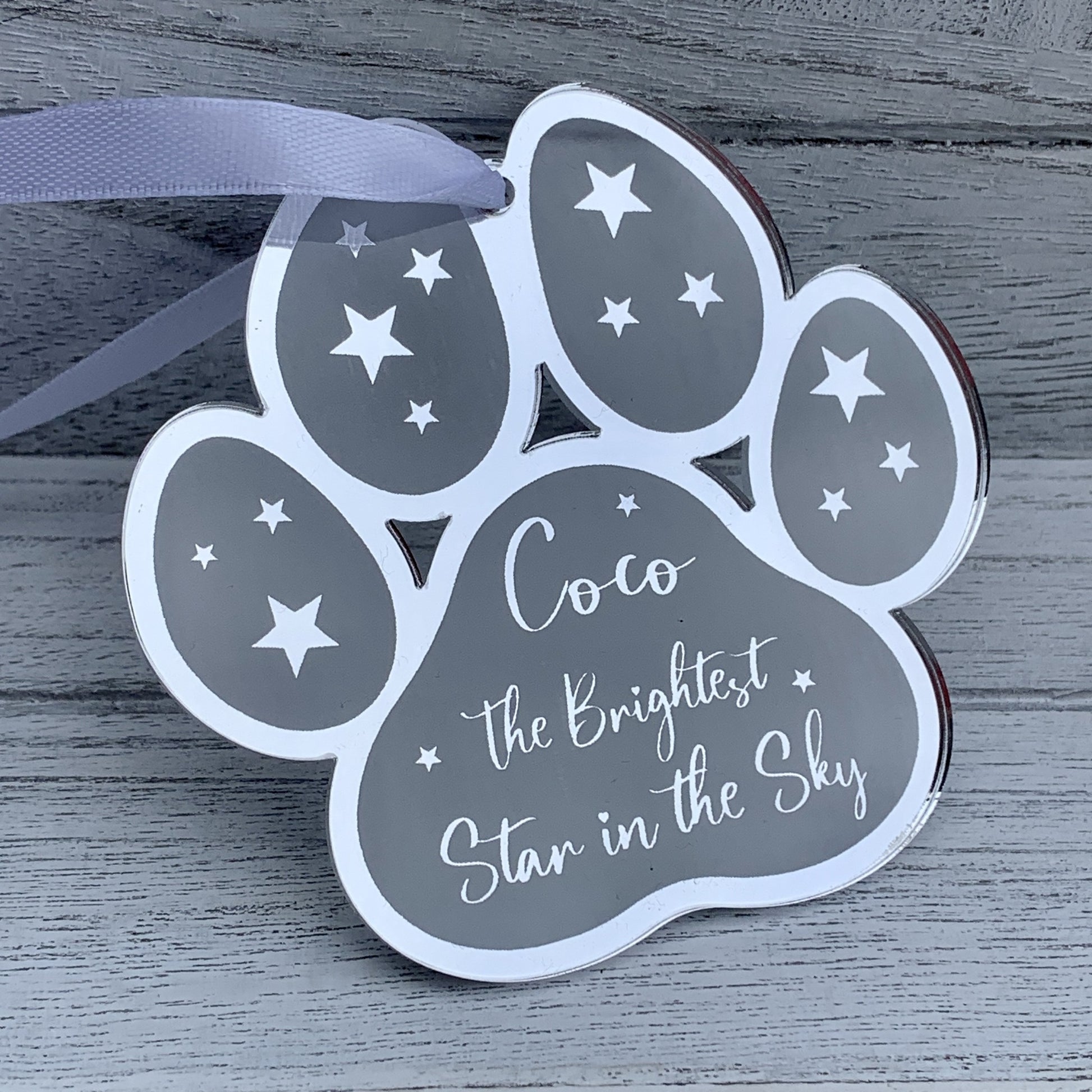 - Honour the memory of a beloved pet with our 'Brightest Star in the Sky' mirrored acrylic ornament, featuring a delicate paw print design.