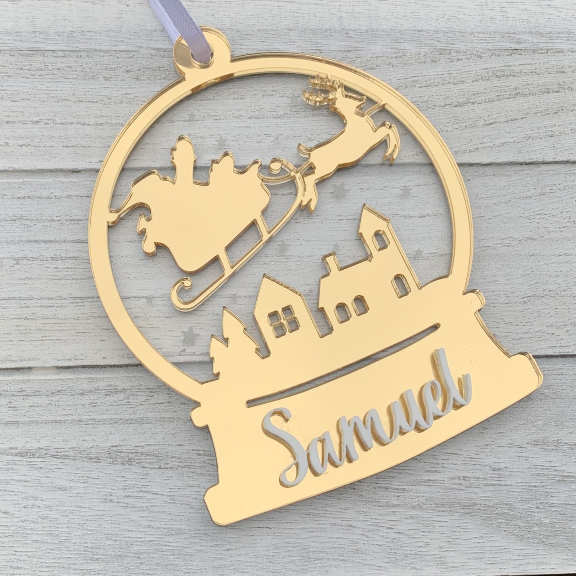 - All globes will have white acrylic name, apart from white globes will have a gold name.
