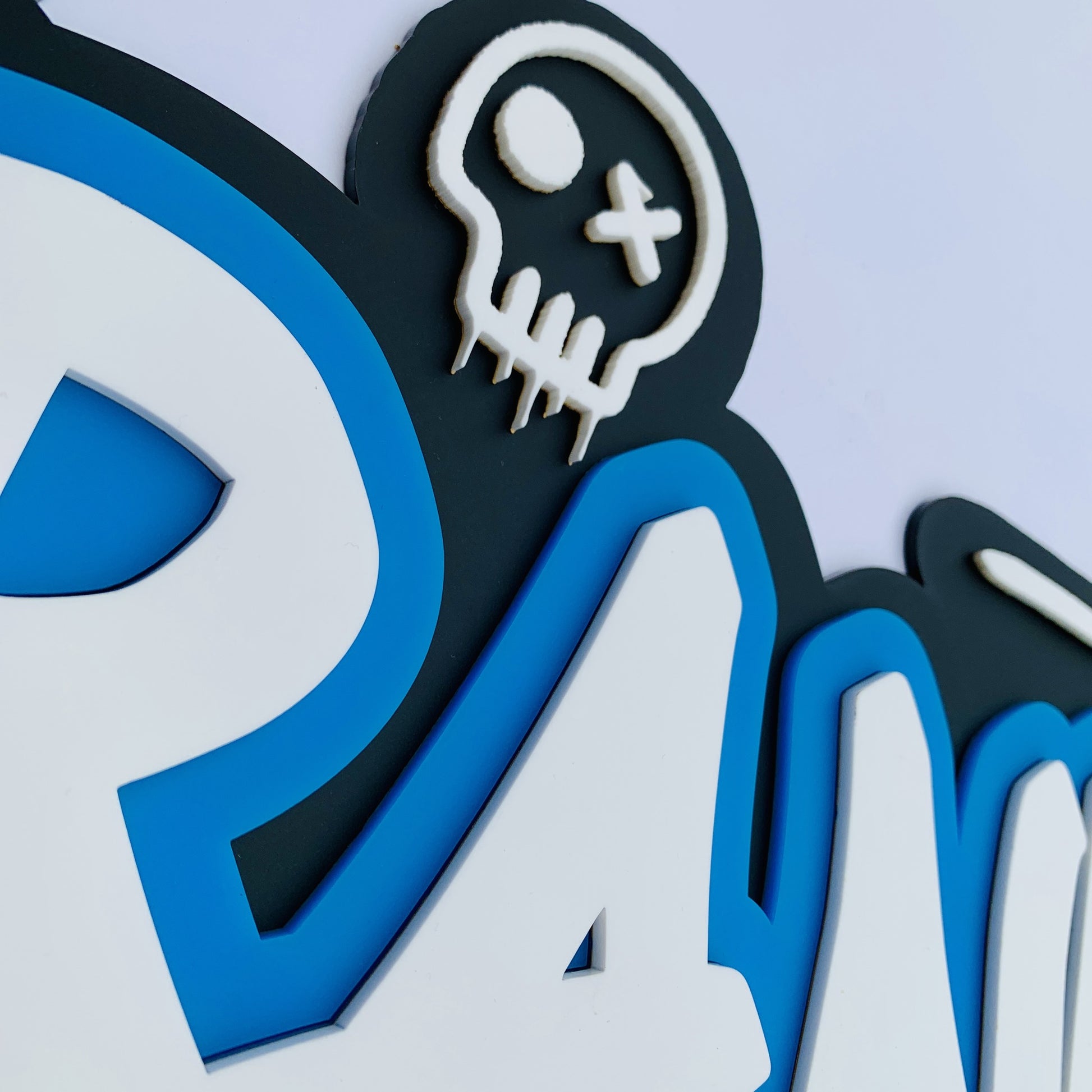 - Whether it's their name or a fun nickname, these layered graffiti-inspired signs bring a pop of street style to any space. Our deluxe range offers a choice of five accents to place around the name.