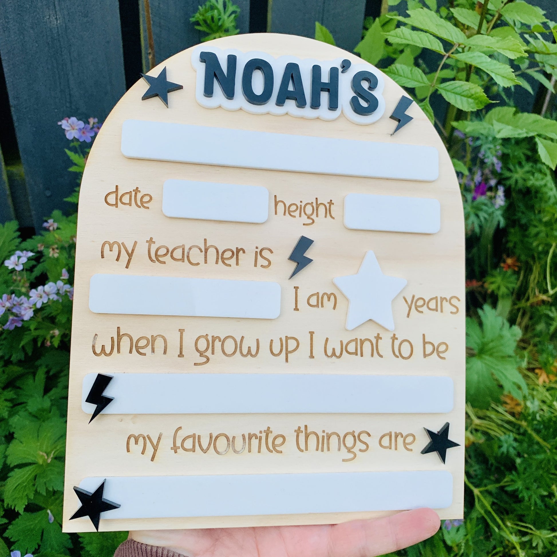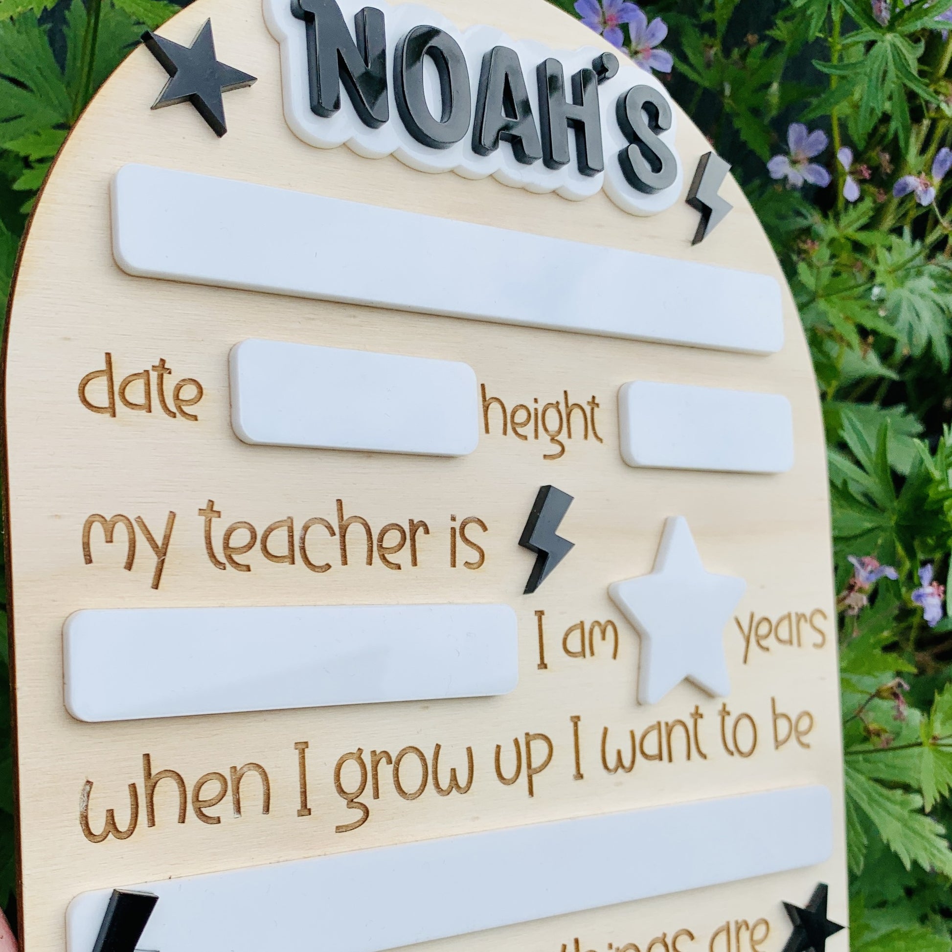 Personalised First Day at School Board with Stars and Lightning Bolts