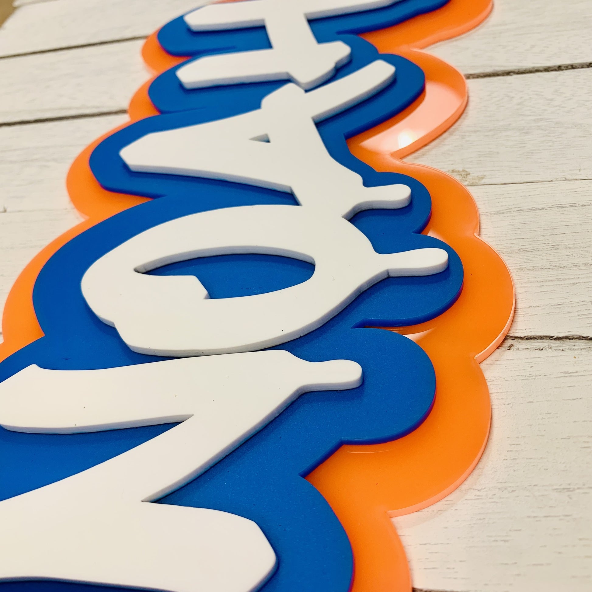 - Whether it's their name or a fun nickname, these layered graffiti-inspired signs bring a pop of street style to any space.