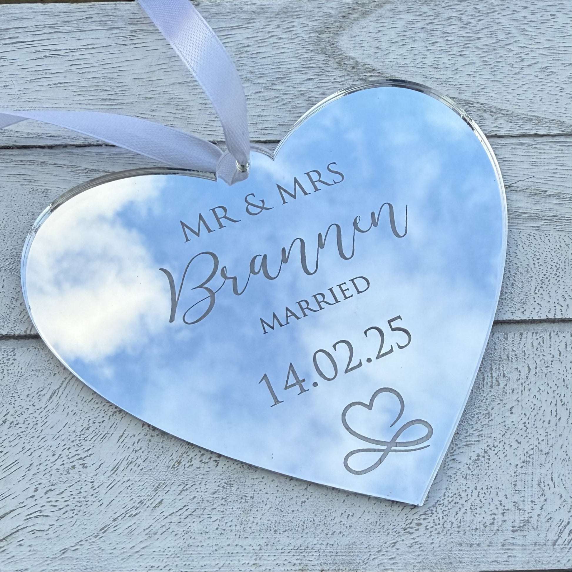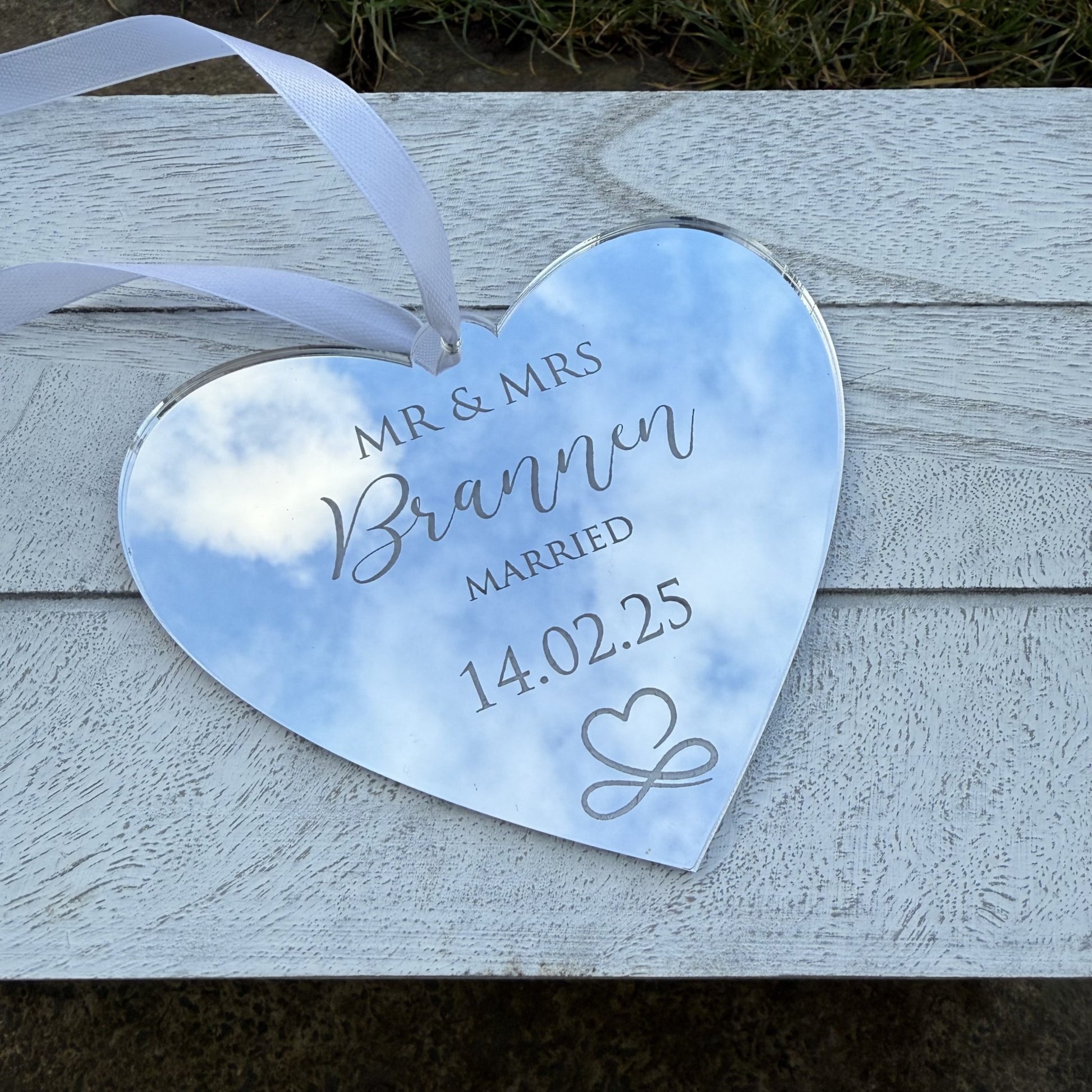 Personalised Mirrored Acrylic Heart – Wedding Gift Keepsake with Names & Date