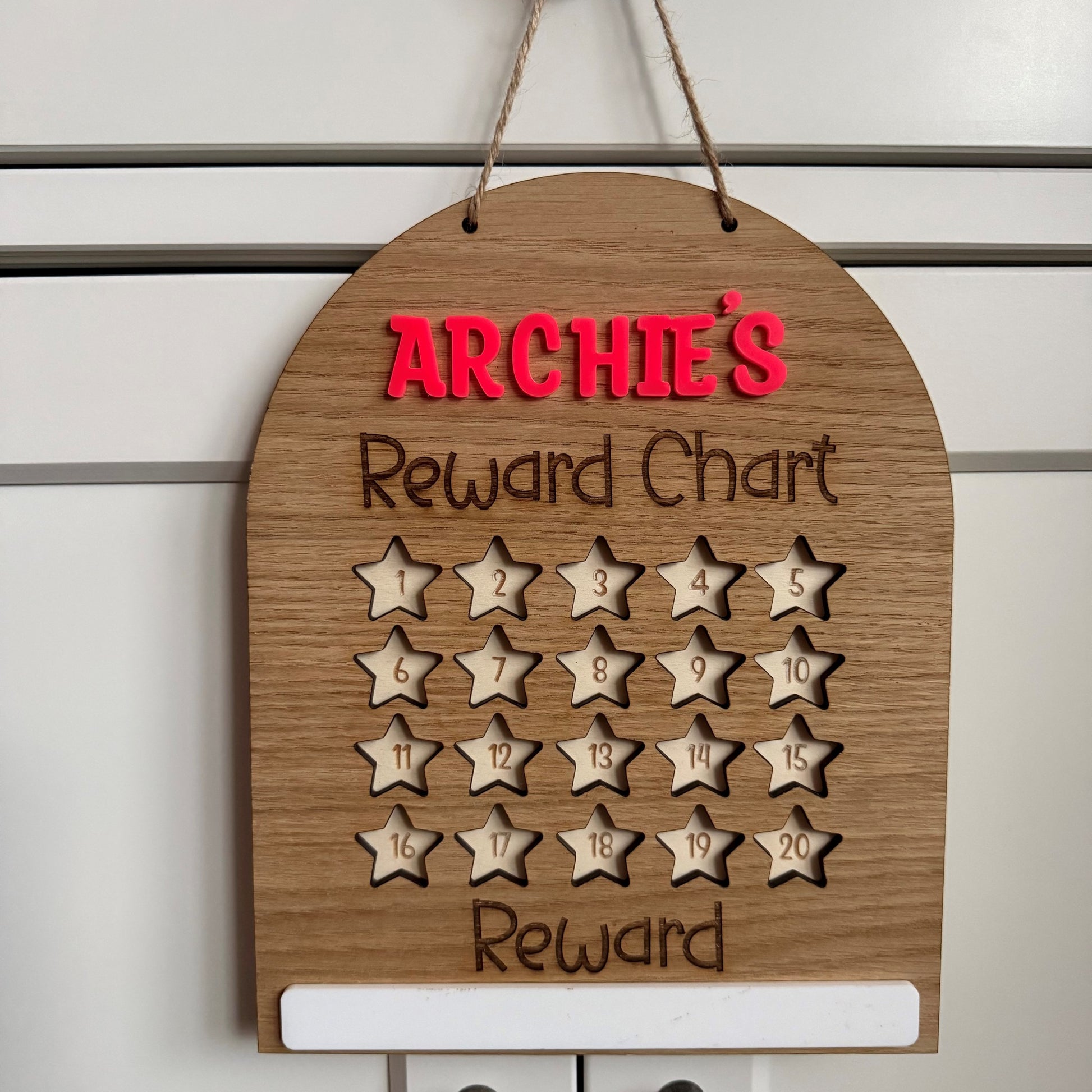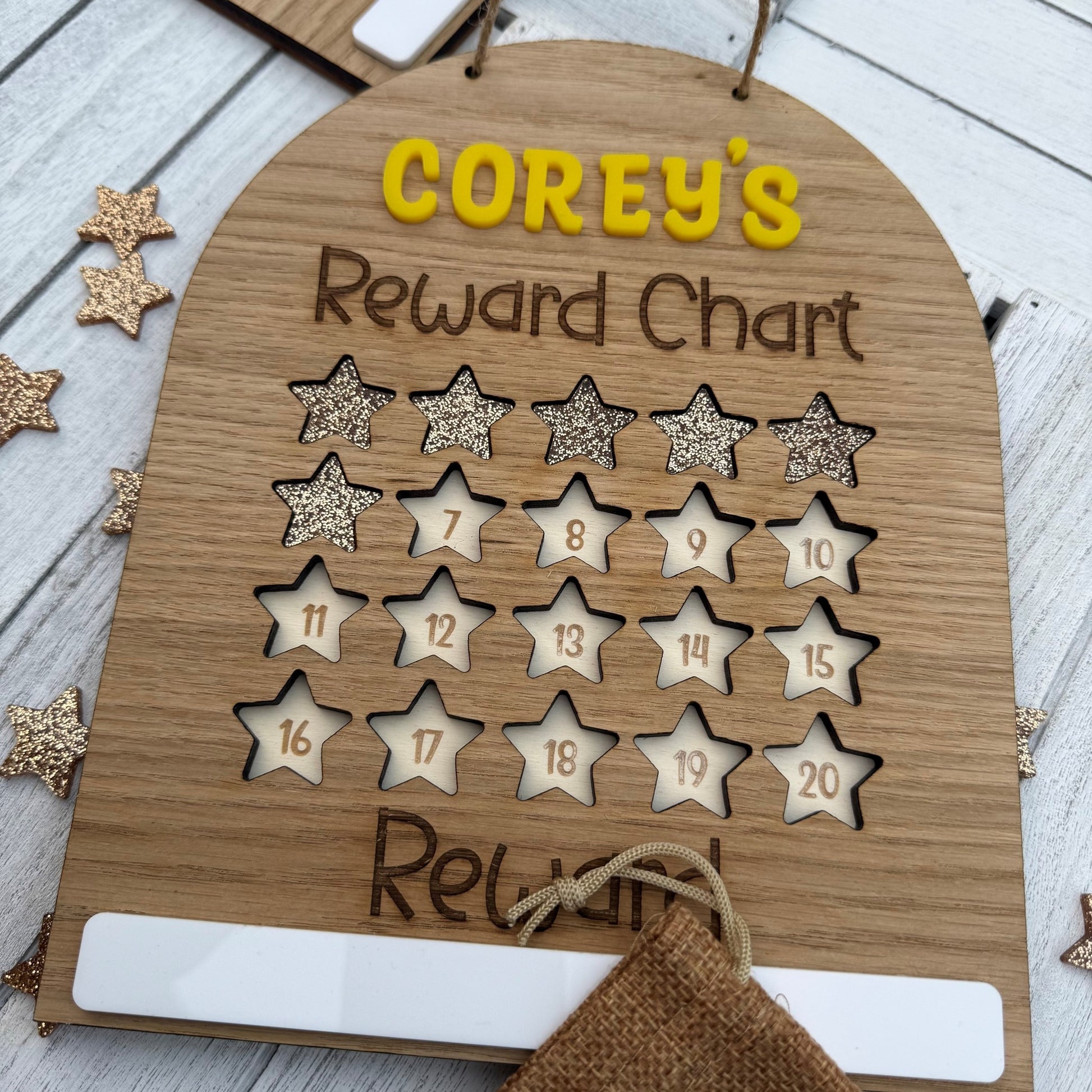 Encourage positive behaviour with our beautifully made personalised reward chart. Designed to make goal-setting fun and engaging, this chart is perfect for motivating children with a visual and interactive reward system. Ideal for tracking chores, good behaviour, ad achievements.