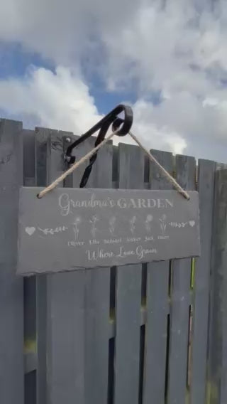 - Celebrate your loved ones with a personalised engraved slate garden sign, featuring: Your Garden's Name, The names of children or grandchildren and their birth flowers, beautifully engraved.