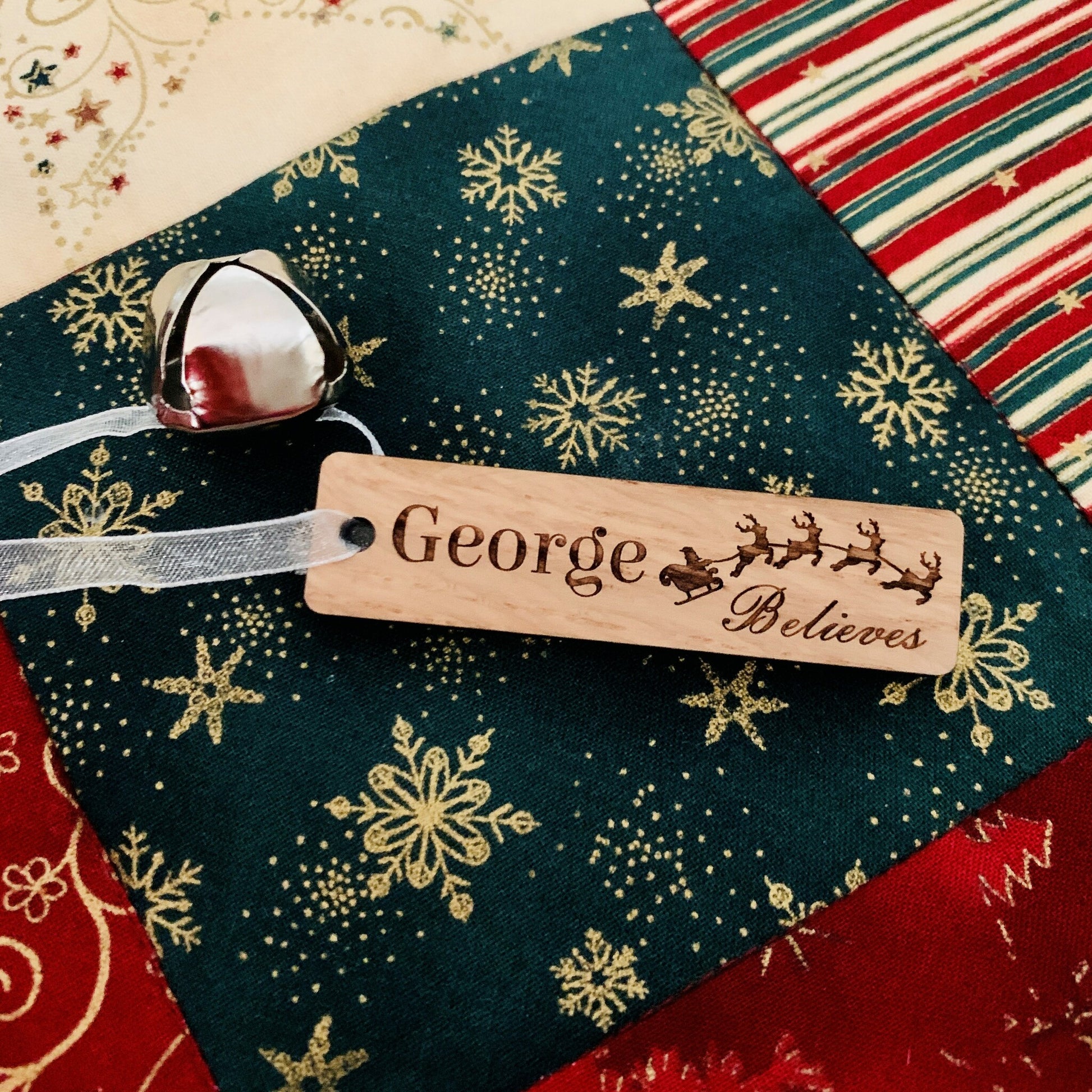 - This is a beautiful magic Santa Sleigh bell made from a personalised solid oak or birch plywood tag and silver bell, tied together with your choice of ribbon.