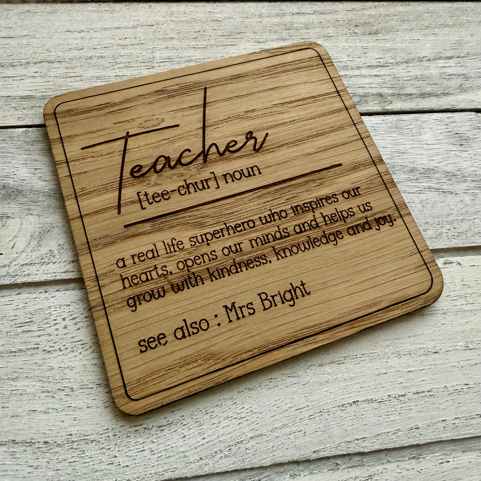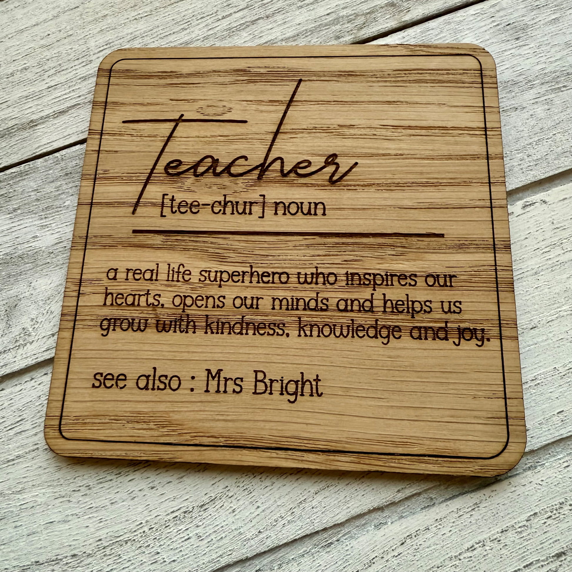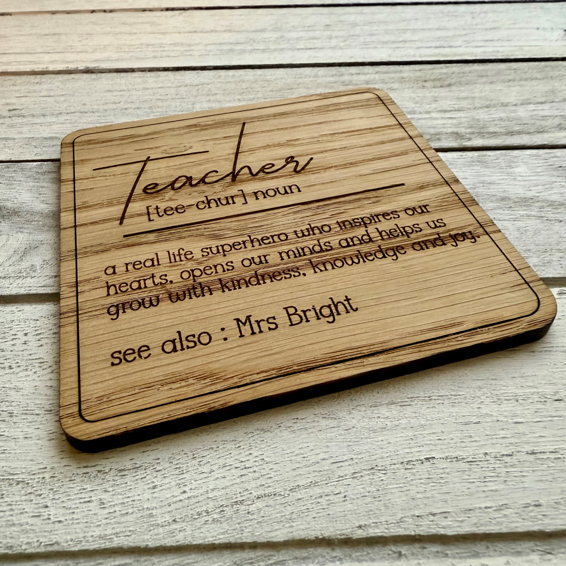 Personalised Teacher Definition Oak Veneer Coaster | Custom Teacher Gift | End of Term Gift | Thank You Teacher | Teacher Appreciation Gift