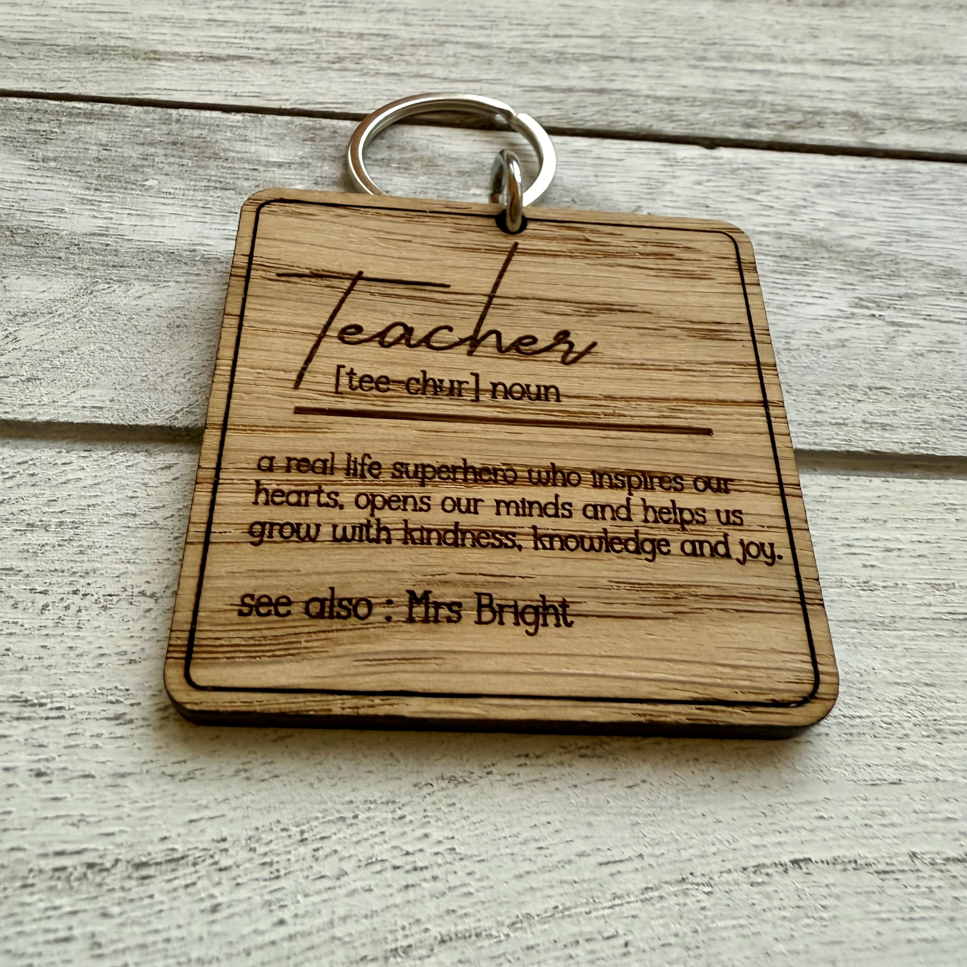 Personalised Teacher Definition Oak Veneer Keyring | Custom Teacher Gift | End of Term Gift |Thank You Teacher| Teacher Appreciation Keyring