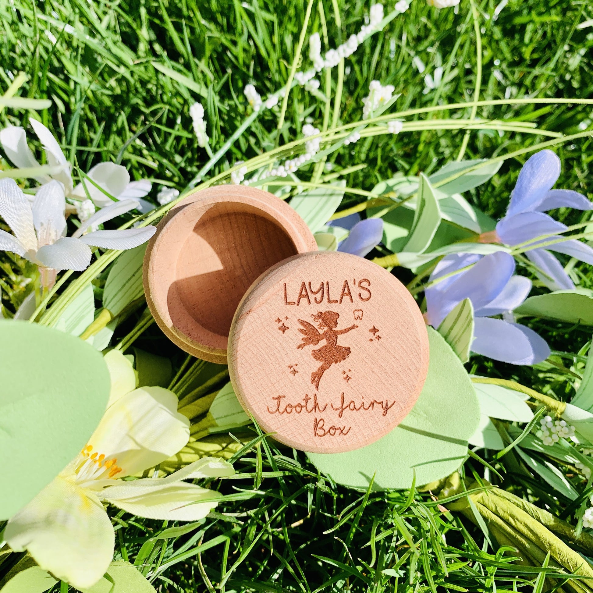 - This is a gorgeous wooden keepsake box in our personalised tooth fairy sparkle design.
